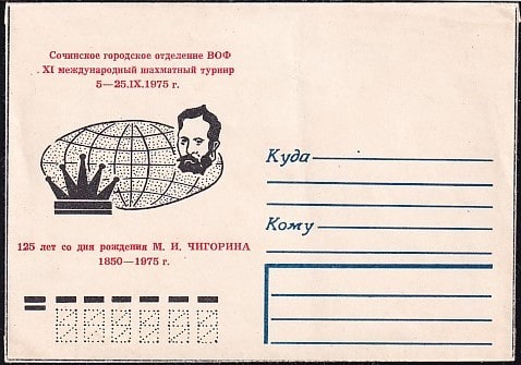 Немаркированный конверт Шахматный турнир "125 лет со дня рождения М. И. Чигорина", 1975 год