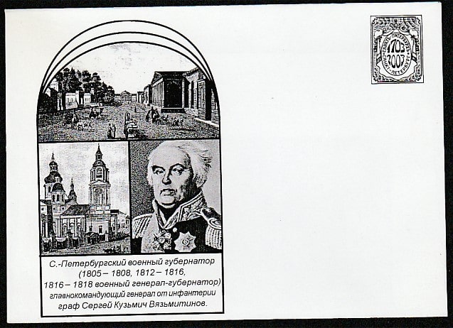 Немаркированный конверт. Военный генерал - губернатор СПб, граф Сергей Кузьмич Вязьмитинов, 2003 год.