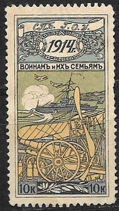 Непочтовая Марка 10 коп. Муниципальный Совет Санкт-Петербург 1914 г. ТОНКОЕ МЕСТО