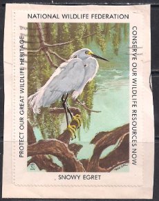 Непочтовая марка 1976 год. "Охрана дикой природы. Снежная цапля". Марка на картоне (гашеная)