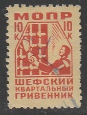 Непочтовая марка Международной организации помощи борцам революции (МОПР), член. взнос 10 коп, 1 марка.