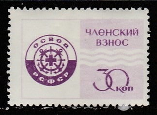 Непочтовая марка.ОСВОД РСФСР, членский взнос 30 к. 1 марка