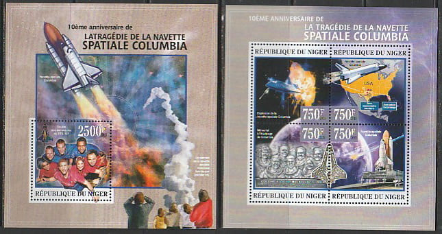 Нигер 2013 год. 10 лет катастрофе шаттла "Колумбия", малый лист + блок.