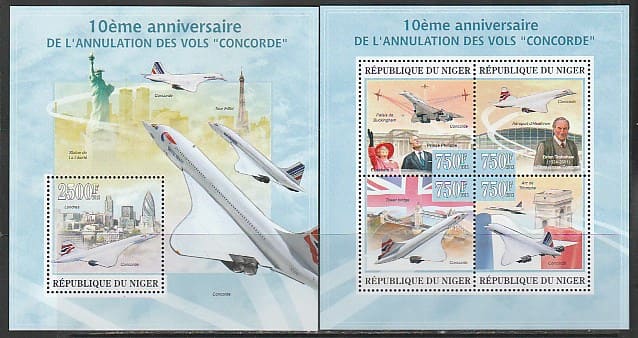 Нигер 2013 год. 10 лет последнему полёту "Конкорда", малый лист + блок.