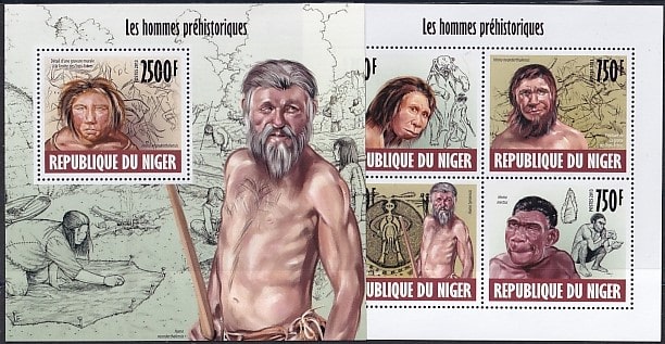 Нигер 2013 год. Доисторические люди, малый лист + блок
