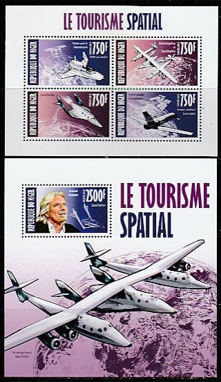 Нигер 2013 год. Космический туризм. Ричард Брэнсон, малый лист + блок.