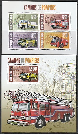 Нигер 2013 год. Пожарная техника, малый лист + блок.