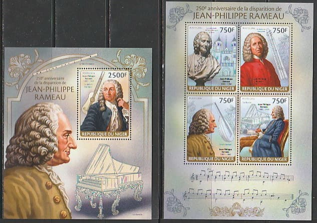 Нигер 2014 год. 250 лет со дня смерти французского композитора Жан-Филиппа Рамо, малый лист + блок.