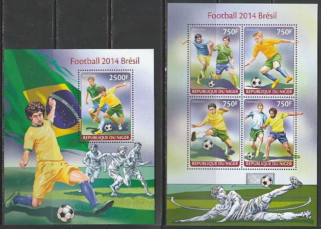 Нигер 2014 год. Чемпионат мира по футболу в Бразилии, малый лист + блок.
