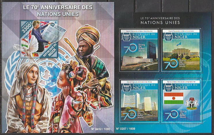 Нигер 2015 год. 70 лет ООН, малый лист + блок.