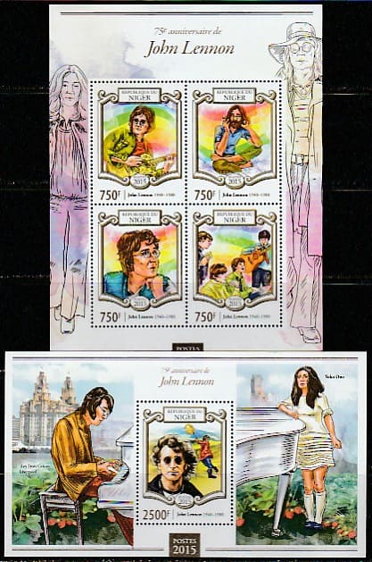 Нигер 2015 год. 75 лет со дня рождения британского рок-музыканта, певца Джона Леннона, малый лист + блок.