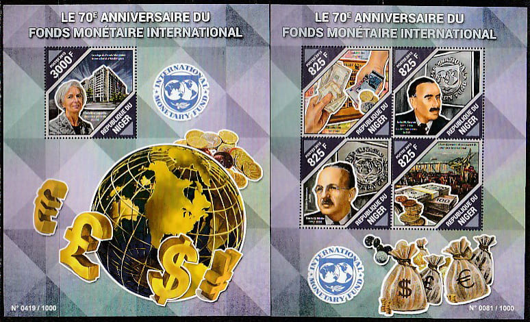 Нигер 2015 год. К 70-летию Международного валютного фонда, малый лист + блок.