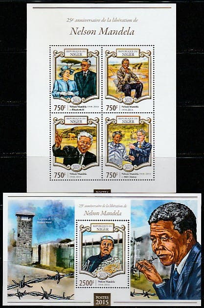 Нигер 2015 год. Южноафриканский борец за свободу, политик Нельсон Мандела, малый лист + блок.