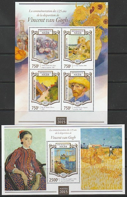 Нигер 2015 год. Живопись Винсента Ван Гога, малый лист + блок