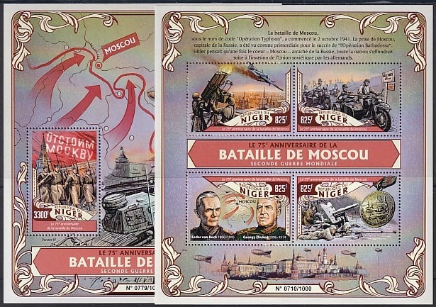 Нигер 2016 г. 75 лет битвы за Москву, малый лист + блок