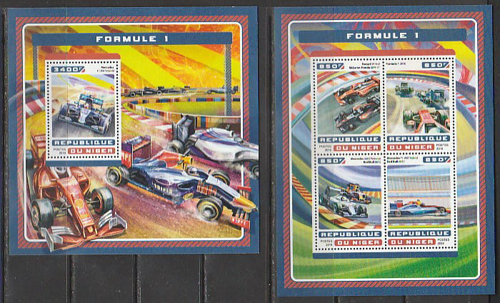 Нигер 2016 год. "Формула-1". Болиды, малый лист + блок.