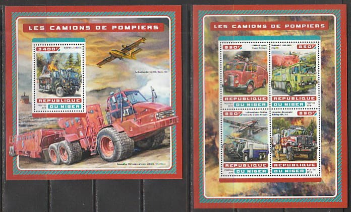 Нигер 2016 год. Пожарная техника, малый лист + блок.