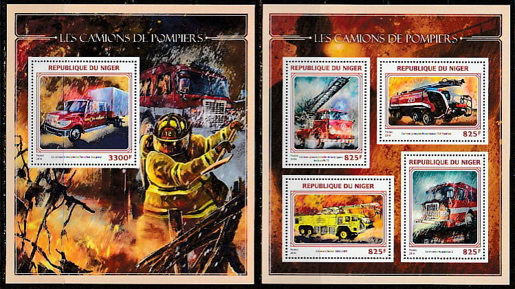 Нигер 2016 год. Пожарная техника, малый лист + блок.