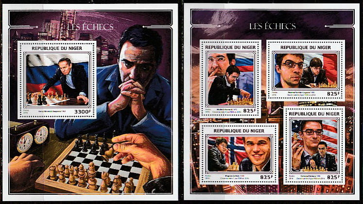 Нигер 2016 год. Шахматы. Гроссмейстеры, малый лист + блок.