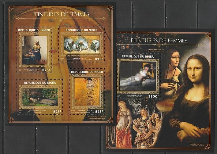 Нигер 2016 год. Женские образы в живописи, блок + малый лист