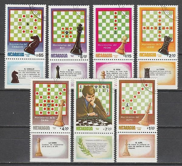 Никарагуа 1983 г, Шахматы, 7 гашёных марок с купонами