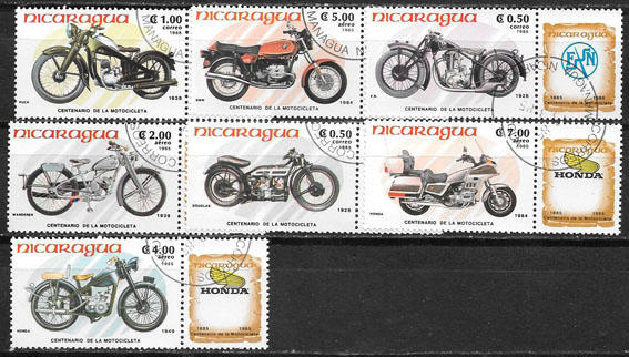 Никарагуа 1985 год. Мотоциклы. 7 гашеных марок. (МНГ