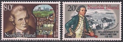 Норфолк 1978 год. 250 лет со дня рождения капитана Кука. 2 марки