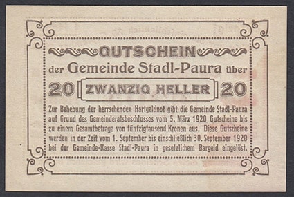 Нотгельд 20 пфеннингов. Германия 1920 год