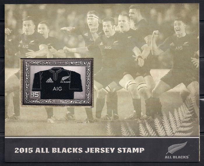 Новая Зеландия 2015 год. Футболка для регби "All Blacks". Марка на листе