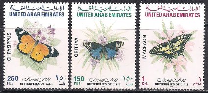 ОАЭ 1997 год. Бабочки. 3 марки (серия без 1 марки) 2.2м