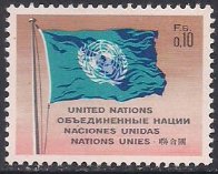 ООН Нью-Йорк 1969 год. Герб и флаг ООН (ном. 1). 1 марка из серии 0.5м