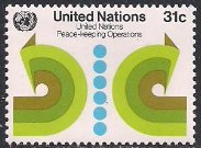 ООН Нью-Йорк 1980 год. Символика. Миротворческие силы ООН (ном. 31). 1 марка из серии 0.3м