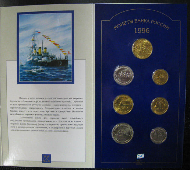 Оригинальный буклет с монетами 300 лет Российского флота, 7 монет, 1996 годОригинальный буклет с монетами 300 лет Российского флота, 7 монет, 1996 годОригинальный буклет с монетами 300 лет Российского флота, 7 монет, 1996 год