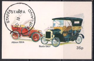 Остров Стаффа (Шотландия) 1972 год. Автомобили ретро. Гашеный блок Сувенирный выпуск
