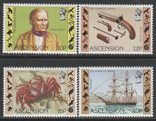 Остров Вознесения 1982 год. 100 лет со дня смерти Чарльза Дарвина, 4 марки.