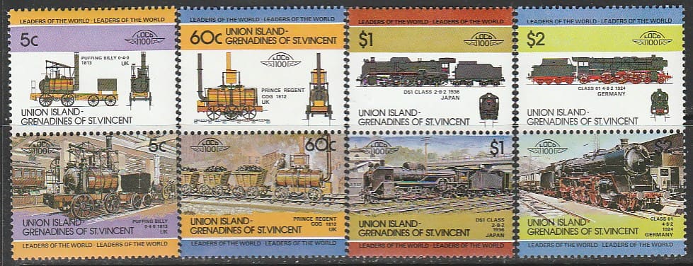 Остров Юнион (Сент-Винсент и Гренадины) 1984 год. Локомотивы, 4 пары марок.