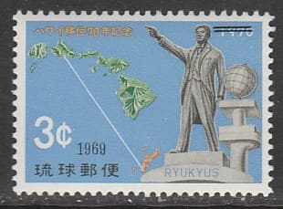 Острова Рюкю (Япония) 1969 год. 70 лет эмиграции на Гавайские острова под руководством Кюдзо Тоями, НДП, 1 марка.