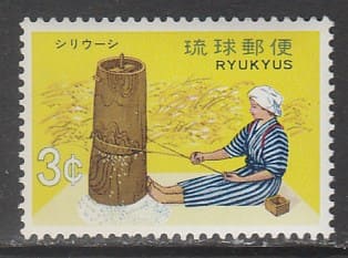 Острова Рюкю (Япония) 1971 год. Местные ремёсла. Обработка риса, 1 марка.