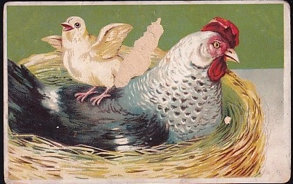 Открытка Германии "Курица с цыпленком" (повреждена)