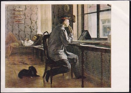 Открытка И. Е. Репин. Приготовление к экзаменам. Выпуск 1966 год