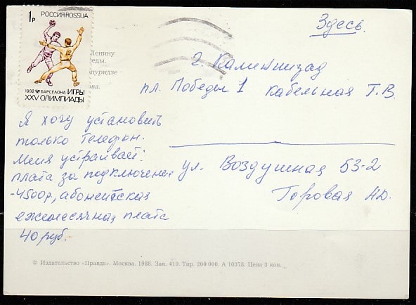 Открытка. Калининград. Площадь Победы, 1988 год, п/почту.