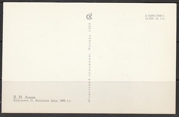 Открытка. Образ вождя в рисунках художника П. Васильева. "В.И. Ленин", "Сх", 1968 год (II)