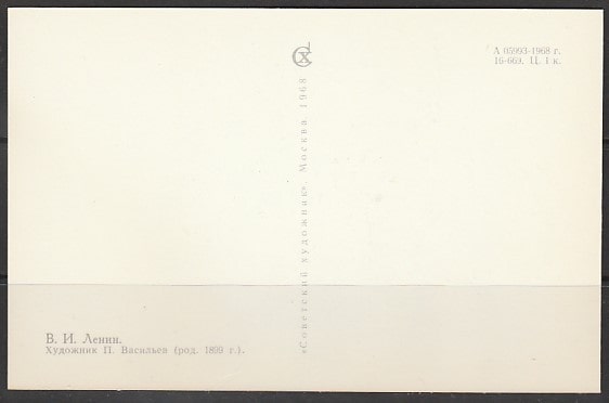 Открытка. Образ вождя в рисунках художника П. Васильева. "В.И. Ленин", "Сх", 1968 год (IV)