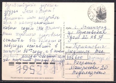 Открытка С Новым годом! выпуск 27.12.1989 год, прошла почту
