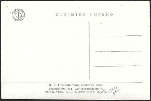 Открытое письмо артистка кино Д.Г. Осмоловская