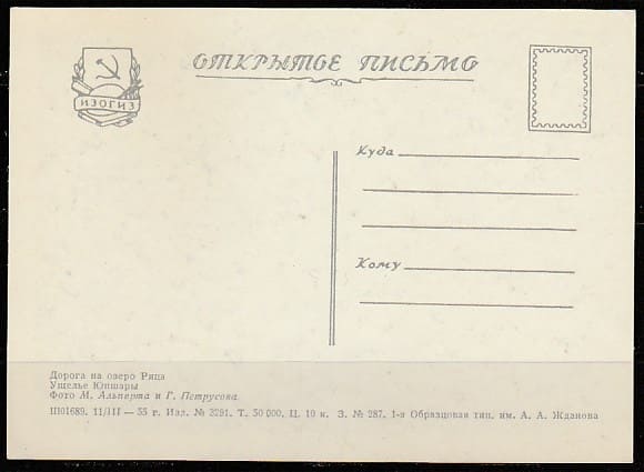 Открытое письмо. Дорога на озеро Рица. Ущелье Юпшары, 11.03.1955 год, "ИЗОГИЗ" (I)