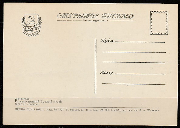 Открытое письмо. Ленинград. Государственный Русский музей, 28.07.1955 год, "ИЗОГИЗ".