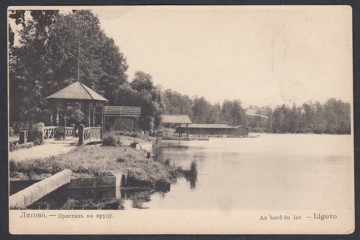 Открытое письмо. Лигово. Пристань на пруду. Наклеена марка ГИЗ