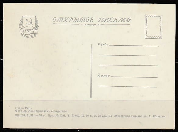 Открытое письмо. Озеро Рица, 11.03.1955 год, "ИЗОГИЗ" (III)