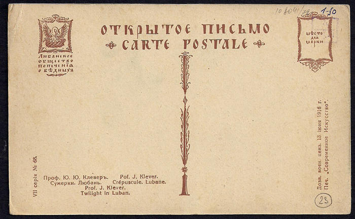 Открытое письмо. Сумерки. Любань. Художник проф. Ю. Клевер 1916 г.
